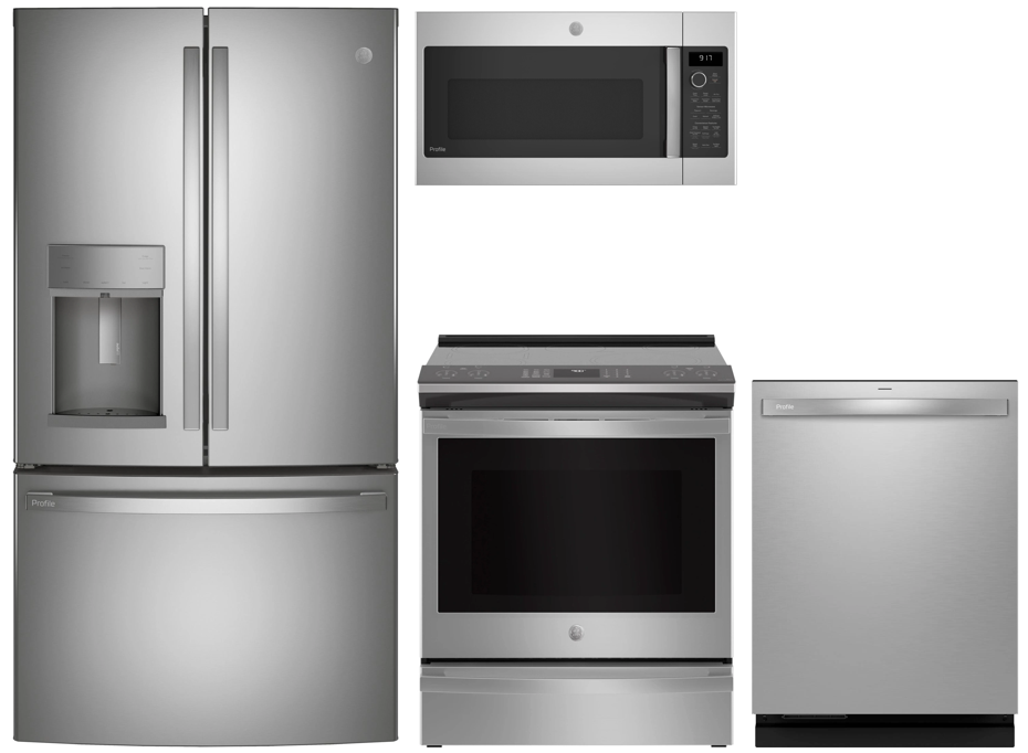 GE Profile Induction Range Kitchen Package includes: GE Profile™ 36 in. 22.1 Cu. Ft. Fingerprint Resistant Stainless Steel Counter Depth French Door Refrigerator, GE Profile™ 30" Fingerprint Resistant Stainless Steel Slide In Induction Range, GE Profile™ 1.7 Cu. Ft. Stainless Steel Over The Range Microwave, and GE Profile™ 24" Fingerprint Resistant Stainless Steel Built In Top Control DishwasherRead More