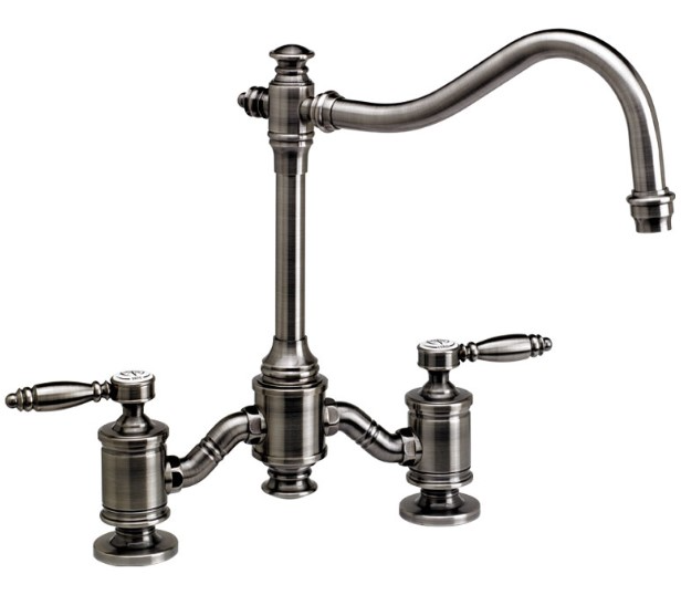 The traditional style Bridge Faucet mounts to the sink or kitchen countertop and has a built-in diverter for connection to optional side spray. Part of the Annapolis Traditional Suite, our Bridge Kitchen Faucet can be matched in finish and style to any Waterstone traditional style accessory. Sink side sprayer, garbage disposal air switch, dishwasher air gap or soap/lotion dispenser. Sink hole covers available to cover that unsightly third hole. Two styles of decorative handle buttons included. This timeless traditional design is available in 31 elegant finishes and has a lifetime functional warranty.
